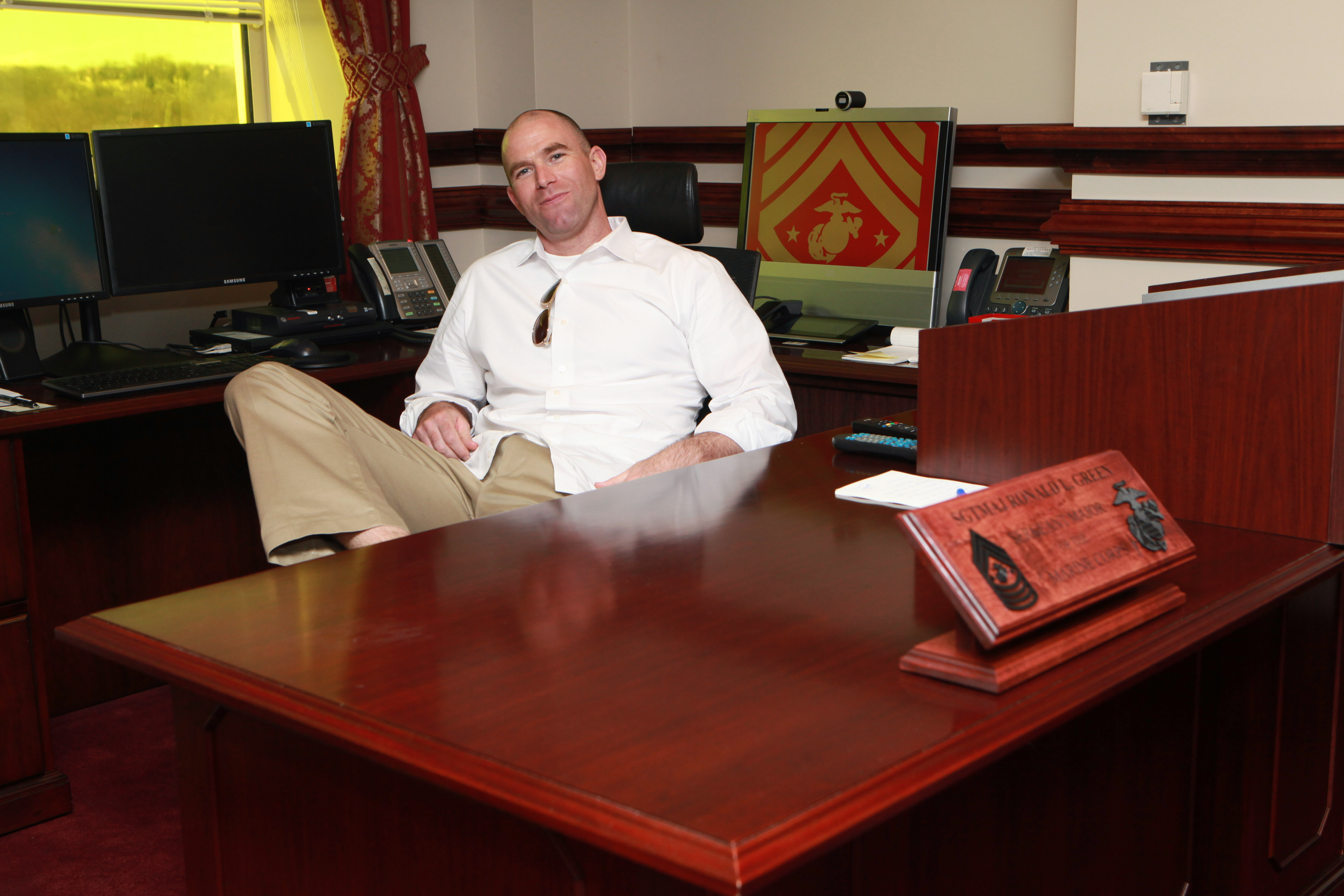 Sgt. Maj. Ronald L. Green, the 18th Sergeant Major of the Marine Corps, attends a social with senior enlisted Marines assigned to Marine Corps Recruit Depot Parris Island, S.C., April 8, 2015. (U.S. Marine Corps photo by Sgt. Marionne T. Mangrum)