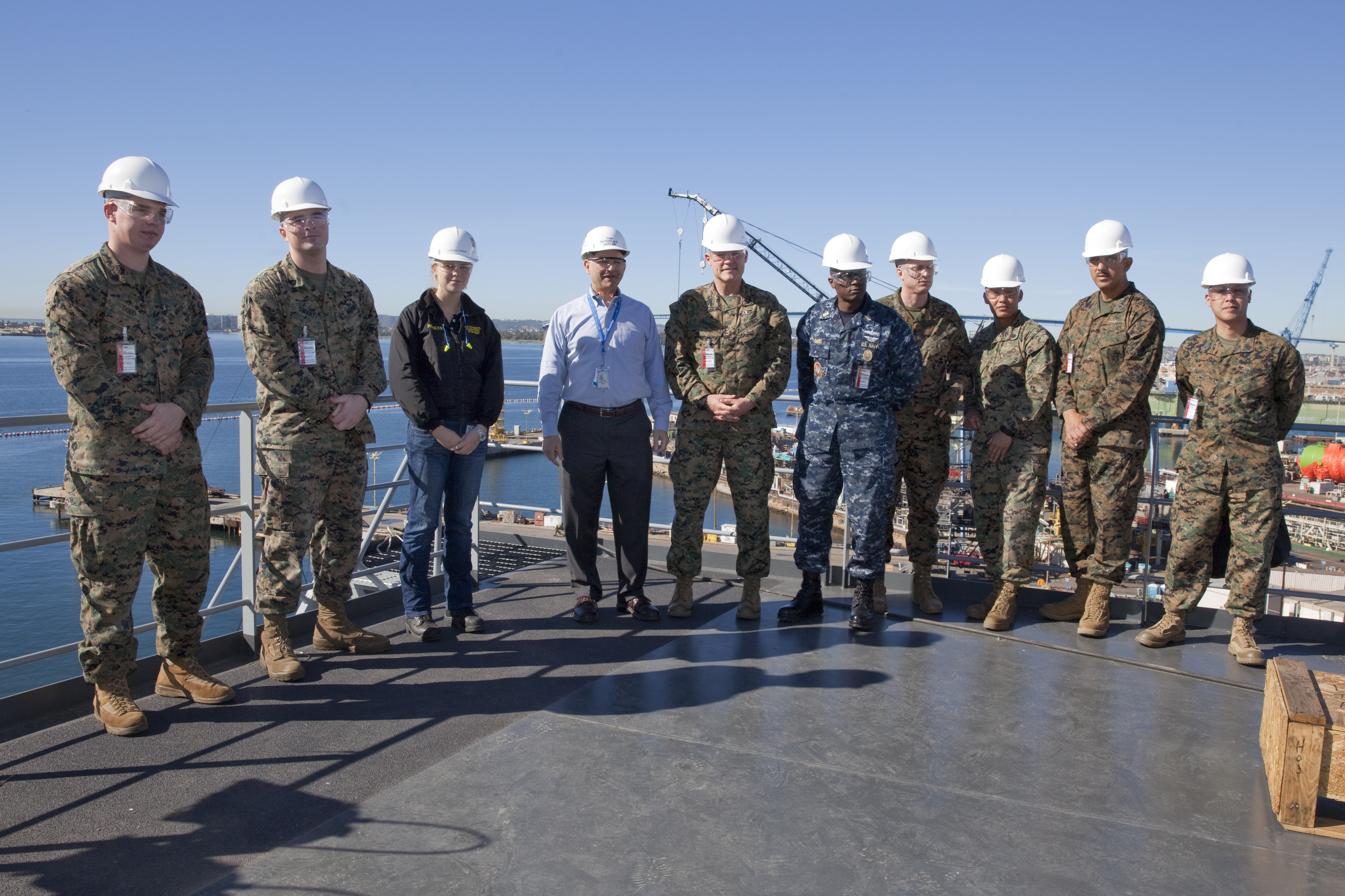 Sgt. Maj. Micheal P. Barrett, the 17th Sergeant Major of the Marine Corps, tours the USNS Lewis B. Puller (MLP-3) at Naval Base San Diego, Calif., on Jan. 5, 2015. (U.S. Marine Corps photo by Lance Cpl. Samantha K. Draughon/ Released)